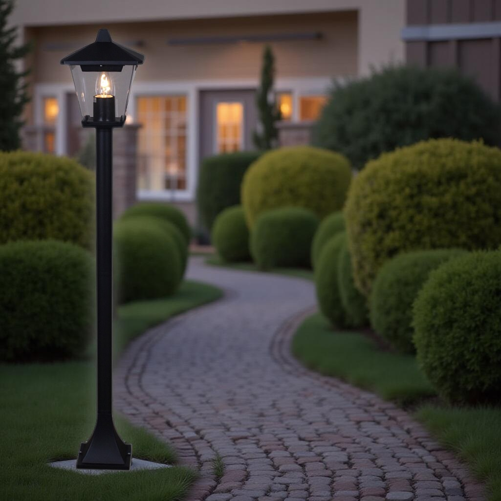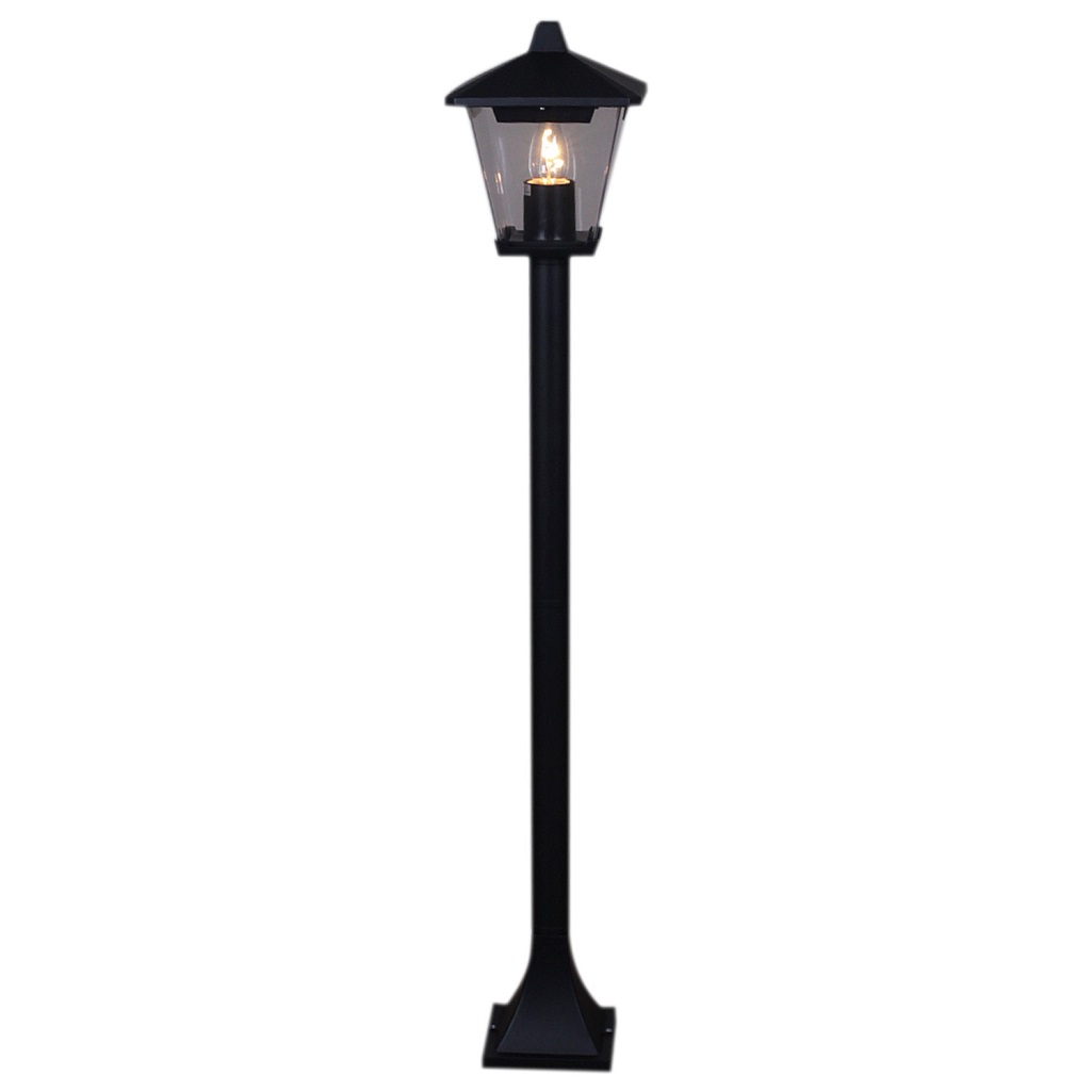 Светильник уличный Reluce 08296-0.7-001SJ 0,8m BK ландшафтный, 40 Вт, Е27, IP54, черный предназначен для оформления садов и парков, украшения уличных композиций, декорирования придомовых территорий. Площадь освещения составляет примерно 2 кв.м. Светильник крепится на грунт, основание имеет высоту 80 см. Конструкция плафона, который выполнен в классическом стиле, защищает стеклянную часть от осадков. Плафон и основание светильника изготовлены из металла. Лампа накаливания мощностью 40 Вт обеспечит яркий свет на территории. Маркировка IP54 означает защиту устройства от проникновения пыли и подходит для использования на лице, если изделие защищено от прямого попадания воды.