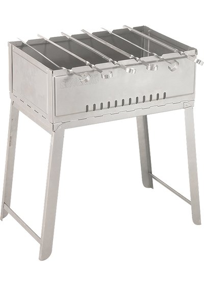 Шесть шампуров из нержавеющей стали, которые входят в комплект, складываются внутрь мангала.